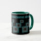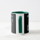 Your Name Big Machine Brew Sci Fi Fantasy Green and Black Coffee Mug. Weird abstract textured squares with 3D floating balls and black dots.