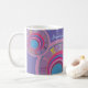 Your Name Coffee Hour Roman Numerals Mug With Colourful Clock Art. Pink purple orange blue lavender yellow circles and layers mug.