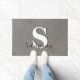 Modern with your monogram initial and name. Textured looking background is artistic in design. Script style typography with large letter and full last name. The perfect outdoor decorating accessory for your home. Grey background colour can be changed to colour of choice.