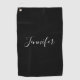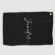Your Name | Elegant White Script on Black Golf Towel