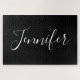 Your Name | Elegant White Script on Black Jigsaw Puzzle