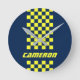 Your Name Fully Custom Colors Checkered Stripe Round Clock