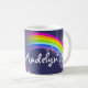 Bright and colourful rainbow "your name" kids mug. Perfect gift for a vibrant child. Mug reads: Madelyn or personalise this mug with the name of your choice up to 7 letters. Mug designed exclusively by Sarah Trett.