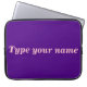 Purple laptop sleeve that you can personalize by typing your name. You can also change the font style, font color and the laptop sleeve color in the design tool. Please check the appearance after typing your name. If the appearance is pleasing to you, you can place your order now. If you need to resize or reposition your name, please adjust in the design tool.