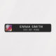 Personalised rounded photo, name and phone number adhesive stickers on black. Perfect for personal belongings and on school books for the kids.