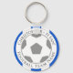Your own name plus the football team you support on a Keyring. Blue and white stripes colour theme.