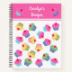 A useful notebook to use in the kitchen, this is decorated with a pattern of hand drawn, pretty, cute cupcakes in sugar candy colours. You can personalise it with your name and words.