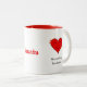 Romance and happiness together, this is what true love is all about. A large red smiling heart illustrates the quote "You make my heart smile". Two pairs of smaller red hearts complete the design. Type in the box to personalise the mug with a name, initials, or additional text.