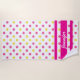 Hot Pink and Sun Yellow polka dots with three pink stripes on one end, this is where you personalise with your name in white - you can change the text , colour and add a background colour to this design - we left the background white.