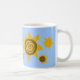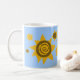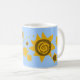 Your Name Sunflowers Yellow Mug Brown Blue Sky Sun Art Coffee Cup. Pretty petals and sunburst yellow flowers on a blue sky background. Personalise with your name and you can customise by adding images or other edits.