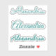 Decorate your laptop, water bottle, case, or other items with three custom stickers featuring your name in 3 different teal handwritten script fonts. Add your name in the sidebar. Select "matte white" in the sidebar to make the transparent background around your name white.