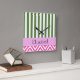 This image features seamless zigzag (chevron, zig zag, zigzag pattern) in pink and white colour. This image also features seamless stripes (striped pattern). Stripes are in green and white colour. Funky and artistic colourful composition. A modern, unique graphic art work for the quirky modernist in you. A zigzag is a decorative pattern made up of small corners at variable angles. You can customise (personalise) this product by adding your name or nickname. Great gift with your name on it for zigzag lovers and many more!