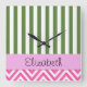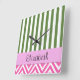 Your Name - Zigzag Pattern, Chevron - White Pink Square Wall Clock