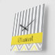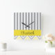 Your Name - Zigzag Pattern, Chevron - Yellow Grey Square Wall Clock