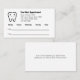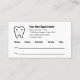 This dentist appointment reminder card says "Your Next Appointment" at the top. Lines of black display text are available for the name of the dentist, street address, and phone number. There are also lines for the date and time of the appointment. The back has display text you can edit to show a custom message. A smiling tooth is near the top. All text can be edited or deleted.
