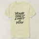 Stay focused and inspired with this bold “Your Only Limit Is You” motivational quote t-shirt. Featuring modern hand-lettered typography on a dark background, this minimalist inspirational design is perfect for entrepreneurs, gym lovers, students, athletes, and anyone chasing big goals.