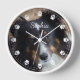 Personalizable photo template for pet owners featuring Destei's stylish paw design clock face that can be changed to any colour. While the sample template has a white colour clock face, you can choose a clock face colour that best compliments your custom photograph. There is also a personalizable text area on this design.