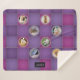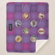 A vintage look quilt with the effect of pretty patches divided by stitching, plus eight customisable pet photo frames to create a unique collage. Each picture will be framed by an embroidery stitch effect circular border (note: you can add square photos, they will automatically show as circles through the round apertures). The patchwork style features purples and a splash of magenta. The perfect finishing touch is to type in your choice of name into the text input box and it will appear on the name label.