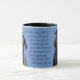 Are you looking for a mug that is personal and unique? Look no further than this blue and black personalized mug featuring your photo and a pug poem celebrating your beloved pug. The mug features a cute black pug puppy with a poem written on it in black text or you can substitute your own photo and write your own poem! It makes a great gift for anyone who loves animals and poetry!