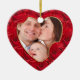 Your Photo: Christmas Red Rose Pattern Heart Frame Ceramic Ornament