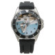 Has heft and feel of expensive stainless steel quartz wrist watches. Solid construction and good looks. Although it had a really top quality rubber strap, I substituted a stainless steel "Shark" style mesh strap, which I think is the most comfortable strap available. Perfect. True colors of original image. Clear, crisp image precisely aligned and spaced.