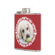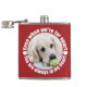 The flask itself is fine. It’s a cheap flask, obviously bought in bulk, however am prepared to overlook that. Given that it is a personalized item, I would have liked to have seen gift boxing instead of the generic packaging. Terrible printing, and/or quality. It’s a cheap, tacky vinyl. It is not cut straight and is also applied in a way that it is overhanging the bottom, causing the glue to catch on items and it will eventually roll and tear, damaging the wrap.