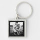 Fully customisable single black and white photo template cursive love text engravable metal keychain on black.