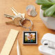 Fully Customisable Single Photo Template Cursive Love Text Engravable Metal Keychain on Black.