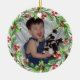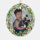 Watercolor holly and berries wreath will accent your favourite photo beautifully. Upload your child's photo or your pets for a special keepsake ornament.