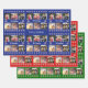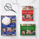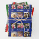 Personalise with six photos and your custom text. The photos appear on all three sheets, so you just need six of your favourites. They will appear as squares: rectangular images will be cropped to fit. The Greeting and Name can be personalised separately on each sheet. One sheet is deep blue, one is red and one is dark christmas green. All are decorated with stylised poinsettia flowers.