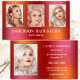 Business card featuring 4 of your own photos in a portfolio on a colourful red orange background design. Beautiful for a hair stylist, makeup artist, nail salon or other beauty related professional.