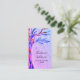 This rustic business card is decorated with a rainbow-coloured mosaic tree design on a purple background.