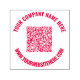 Custom font / Choose Colour - Personalised Your QR Code and Custom Text Professional Design Business Name Website Round Self-inking Stamps / Gift - Add Your QR Code - Image or Logo - photo / Name - Company / Website or E-mail or Phone - Contact Information / Address / more - Resize and Move or Remove / Add Elements - Image / Text with Customisation Tool. Choose Font / Size / Colour ! Please see my others projects / designs. You can also transfer this designs to more than 1000 Zazzle products. Please use your logo / QR code - image that does not infringe anyone's Copyright ! Good Luck - Be Happy :)