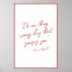 With the freedom to customise this print with a quote that is close to your heart, this piece becomes a reflection of you! Set against a backdrop of white, the elegant deep red script adds a touch of refinement, making it a cherished addition to any room!