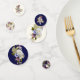 Used as a title for a member of a royal family, the "Your Royal Highness" collection is a reminder to walk with your chin up, back straight with an air of confidence no matter what life may bring. The "Your Royal Highness" floral cake table confetti is a stately design of royal blues and purples graced with soft tufts of Queen Anne’s lace, bringing an elegance and imperial style to your special occasion.