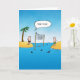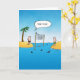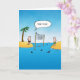 A funny cartoon card featuring two guys stranded on their own little desert islands with a volleyball net in between in shark infested waters. The ball is in the water between the islands and one of the guys says "your serve." This funny and colourful card is perfect for "Let's get in touch" messages or whatever you like. Blank inside for YOUR message. Make it uniquely yours!