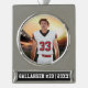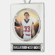 Custom ornament featuring your sports photo with personalised name, player number, and year in bold collegiate typography. Type the text however you wish to fit. Try it out to see how it looks!