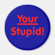 An ironic statement on the intelligence (or lack of) of some people. (For those of you who don't get the joke, it should be "You're Stupid!")