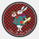 These eye catching customisable stickers features an Alice in Wonderland theme with a classic black and red chequerboard pattern. In the centre there is a vintage image of the White Rabbit from Carroll's famous work. The rabbit wears a royal squire top bedecked in hearts and carries a trumpet, scroll, and his pocket watch. The customisable text says Follow The White Rabbit in default white cursive print. Hit the Personalise button to change the text, or the Edit button to change the font, text colour, or background colour. Makes a great gift or party favour item for lovers of checked and chequerboard patterns, Alice in Wonderland, and the White Rabbit. This design is also available on buttons, pillows, gift bags, and other items.