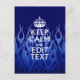 Your Text for Keep Calm on Blue Racing Flames Postcard