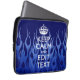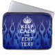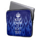 Your Text on Keep Calm on Blue Racing Flames Laptop Sleeve