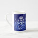 Your Text on Keep Calm on Navy Blue Racing Flames Bone China Mug