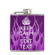 Your Text on Keep Calm Purple Racing Flames Decor Hip Flask