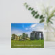 Get whisked away to Stonehenge with this fully customisable postcard. This card features the mysterious stone circle monument on a bright sunny day, with vibrant green grass. The impressive prehistoric monument is found in Amesbury, Wiltshire, England. The archaeological site remains a popular travel destination for fans of world heritage sites, ancient ruins and burial grounds, and English history. The reverse side of the card is default light blue with a tiny Stonehenge accent picture at the bottom centre. There is a spot to personalise the card with your own text, the default text reads Stonehenge, Wiltshire England in white print. Just hit the Personalise button to edit or delete text, or hit the Edit further button to change the font, font colour, or reverse side colour. Great for travelers, lovers of England, Europe, ancient monument sites, scrapbooking, mementos, and dreamy travel postcard aficionados.
