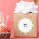 Your Text Template, white circle, black text, Classic Round Sticker