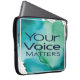 Empower your creativity and protect your laptop with the Your Voice Matters laptop sleeve. Designed for artists, creators, and advocates, this sleeve serves as a stylish and functional reminder that your unique voice has the power to make a difference. Crafted from high-quality materials, it offers a snug fit, soft padded interior for scratch protection, and a water-resistant exterior to guard against spills. Lightweight and sleek, this laptop sleeve is perfect for those on the move, whether you're working in a studio, café, or anywhere inspiration strikes. Let this design inspire you to share your story and amplify your voice.