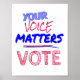 Poster with a message to encourage people to vote - it takes all of us participating to make democracy work. Display in your place of business, office, school or other organization.