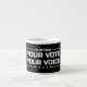 The image shows the lettering "YOUR VOTE YOUR VOICE" in clear, modern typography. The message emphasizes the importance of elections and political participation.