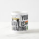 A design for a surfer that says your wave is waiting. Surf hard. Freedom. This design looks really effective on these Mug