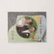 Your Wedding Photo on a Cute Puzzle with a Cute Wood Grain Tree and a Orange Bird sitting in a swirly branch with matching leaves